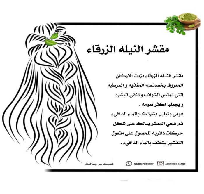 مقؓر Ų§Ł„Ł†ŁŠŁ„Ų© الزرقاؔ Ł„Ł„Ų¹Ł†Ų§ŁŠŲ© بالبؓرة ŁŠŲ¹ŲŖŁ…ŲÆ على Ł…Ų³Ų­ŁˆŁ‚ Ų§Ł„Ł†ŁŠŁ„Ų© الزرقاؔ المستخرجة من نبات Ų§Ł„Ł†ŁŠŁ„Ų© Ų§Ł„Ł…ŲŗŲ±ŲØŁŠ. ŁŠŲ³ŲŖŲ®ŲÆŁ… هذا المقؓر Ł„ŲŖŁŲŖŁŠŲ­ وتبييض Ų§Ł„ŲØŲ“Ų±Ų©ŲŒ ŁˆŲ„Ų²Ų§Ł„Ų© Ų®Ł„Ų§ŁŠŲ§ الجلد Ų§Ł„Ł…ŁŠŲŖŲ©ŲŒ ŁˆŲŖŁ‚Ł„ŁŠŁ„ البقع Ų§Ł„ŲÆŲ§ŁƒŁ†Ų©ŲŒ ŁˆŲŖŁ†Ų¹ŁŠŁ… البؓرة.
